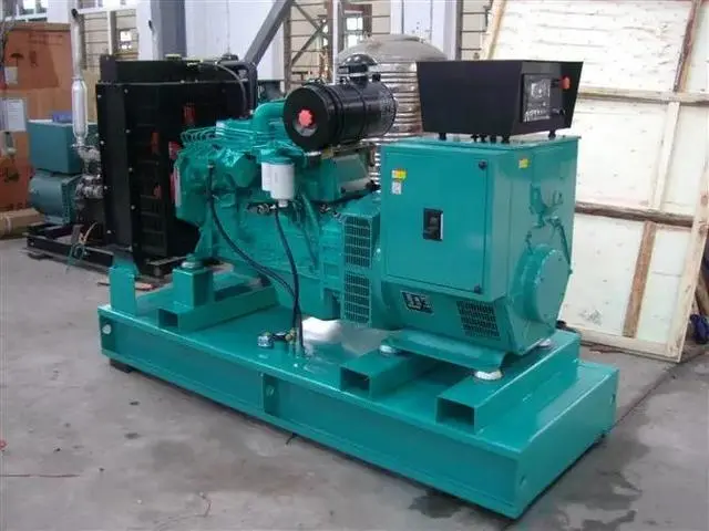 现代柴油发电机组是由柴油机、三相交流无刷同步发电机、控制箱(屏)、散热水箱、电气控制箱、燃油箱、消声器及公共底座等组件组成刚性整体。除功率较大的机组的控制屏、燃油箱单独安装外,其它的主要部件均装置在型钢焊接而成的公共底座上,便于移动和安装。柴油机的飞轮壳与发电机前端盖的轴向采用凸肩定位直接连接成一体,并采用SAE标准的刚性飞轮联接盘由飞轮直接驱动发电机旋转。这种联接方式由螺钉固定在一起,使两者联接成一刚体,保证了柴油机的曲轴与发电机转子的同心度在规定允许范围内。为了减小机组的振动,在柴油机、发电机、水箱和电气控制箱等主要组件与公共底架的连接处,通常均装有减震器或橡胶减震垫。